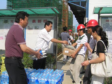 7月26日下午,安徽建工集團工會(huì )副主席李鵬飛一行在省三建副總經(jīng)理駱新農的陪同下,來(lái)到該公司高速·濱湖時(shí)代廣場(chǎng)二期項目部和亞華名苑二期項目部“送清涼”。將綠豆、白糖、礦泉水等防暑降溫食品送到工地,受到了職工歡迎。