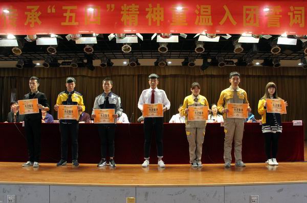 “我們是五月的花海,用青春擁抱時(shí)代;我們是初升的太陽(yáng),用生命點(diǎn)燃未來(lái)……”伴隨著(zhù)莊嚴的旋律,千人齊聲高唱中國共青團團歌——《光榮啊,中國共青團》,活動(dòng)拉開(kāi)了帷幕。隨后,在16建筑施工班魏韜同學(xué)的帶領(lǐng)下,參加活動(dòng)的所有領(lǐng)導和同學(xué)們面對鮮紅的團旗,高舉右拳,重溫了入團誓詞,再次接受了一次思想洗禮。15機電一體化班的張為民同學(xué)代表全院共青團員做了團旗下的講話(huà),并在活動(dòng)現場(chǎng),對在三月份學(xué)雷鋒活動(dòng)中表現突出的先進(jìn)集體和先進(jìn)個(gè)人進(jìn)行了表彰。