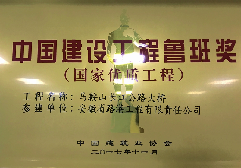 11月6日,從在北京釣魚(yú)臺國賓館召開(kāi)的紀念魯班獎創(chuàng )立30周年暨2016~2017年度創(chuàng )精品工程經(jīng)驗交流會(huì )上傳來(lái)喜訊,安徽路港參建的馬鞍山長(cháng)江公路大橋工程榮獲2016年-2017年度中國建設工程魯班獎(國家優(yōu)質(zhì)工程)。