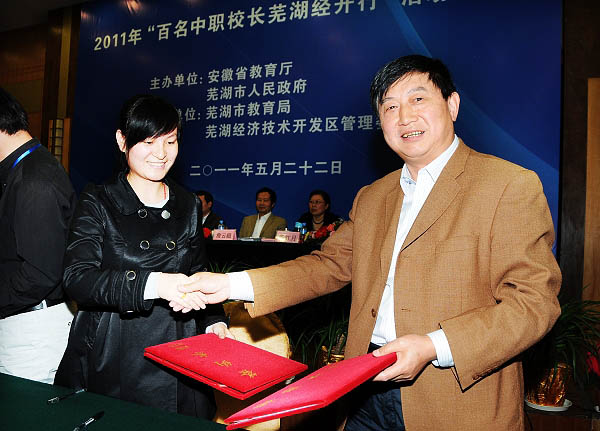 5月22日,王禮義院長(cháng)應邀赴江城蕪湖市出席了“2011百名中職校長(cháng)蕪湖經(jīng)開(kāi)行”活動(dòng),與信義光伏(安徽)控股有限公司簽訂了校企對接協(xié)議,并與多家企業(yè)達成校企合作意向。