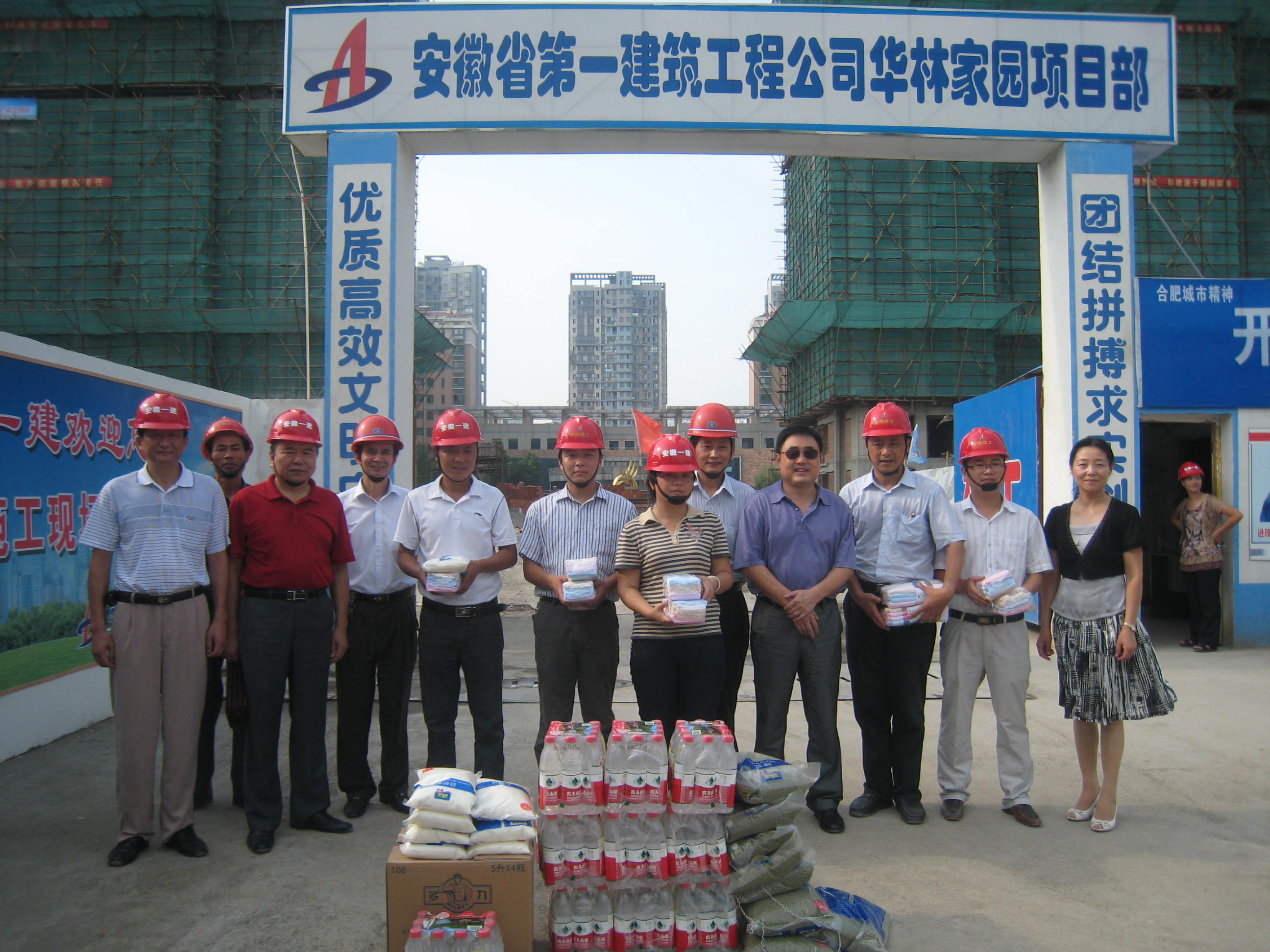 8月16日上午,集團公司董事長(cháng)、黨委書(shū)記胡運成,在集團公司紀委書(shū)記、工會(huì )主席牛曙東、工會(huì )副主席吳曉伍、女職委主任胡愛(ài)紅等同志的陪同下,冒著(zhù)高溫,到省一建公司承建的華林家園二期工程工地,親切看望了正在施工的一線(xiàn)廣大職工,并為他們送去綠豆、白糖、毛巾、礦泉水等防暑降溫用品。