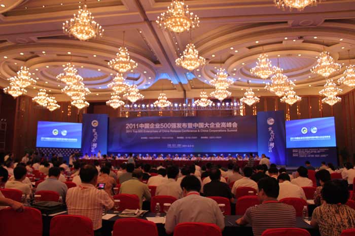 9月3日—5日,2011中國企業(yè)500強發(fā)布暨中國大企業(yè)高峰會(huì )在四川隆重開(kāi)幕。全國政協(xié)原副主席,中國企業(yè)聯(lián)合會(huì )、中國企業(yè)家協(xié)會(huì )會(huì )長(cháng)王忠禹作主題報告。國務(wù)院國資委副主任黃淑和出席會(huì )議并講話(huà)。中國企業(yè)聯(lián)合會(huì )、中國企業(yè)家協(xié)會(huì )常務(wù)副會(huì )長(cháng)兼理事長(cháng)李德成主持大會(huì )。來(lái)自全國各地的500強企業(yè)、跨國公司、專(zhuān)家學(xué)者、政府部門(mén)的代表共1000余人參加了會(huì )議。