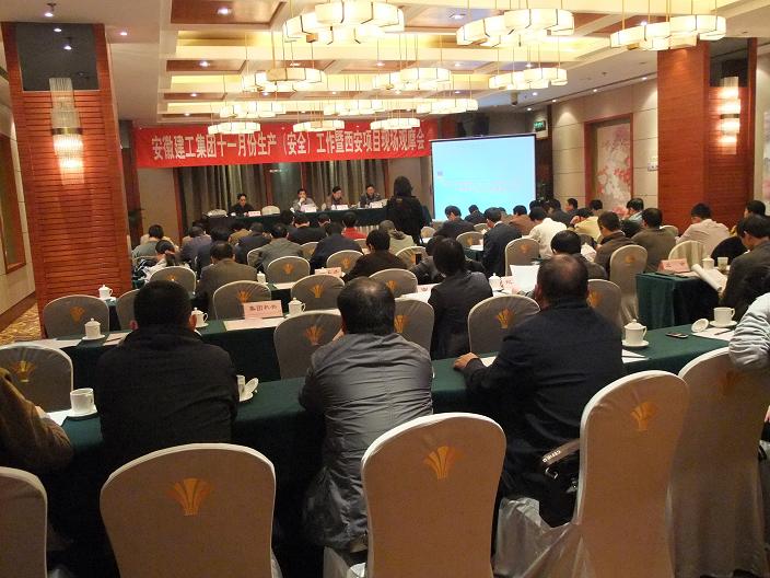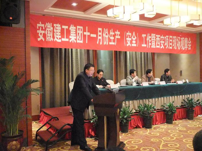 11月4日,安徽建工集團十一月份生產(chǎn)(安全)工作暨西安項目現場(chǎng)觀(guān)摩會(huì )在安徽三建西北公司召開(kāi)。集團公司副總經(jīng)理、總工程師戴良軍、總經(jīng)理助理郭道真、各單位分管領(lǐng)導、安全部門(mén)負責人及集團公司機關(guān)部門(mén)負責人等50多人參加了會(huì )議。與會(huì )人員觀(guān)摩了西安市繞城基地項目施工現場(chǎng)。項目經(jīng)理就工程概況、工程進(jìn)度、項目管理及工程重難點(diǎn)、質(zhì)量控制、安全生產(chǎn)、文明創(chuàng )建以及企業(yè)文化宣傳等各方面建設情況進(jìn)行了匯報。安徽三建西北公司經(jīng)理劉順利就西北公司的成立、發(fā)展、經(jīng)營(yíng)規模、取得成績(jì)和發(fā)展方向等進(jìn)行了介紹。