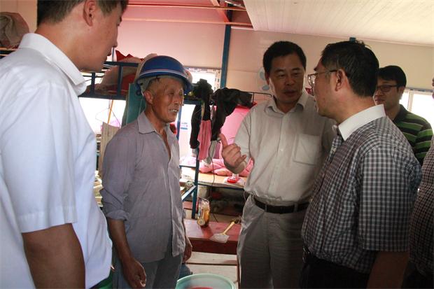 在三建八公司大圩金葡萄項目農民工生活區,張毅走進(jìn)工人宿舍,與工友拉起了家常。交談中一位叫李云星的工友告訴他,大家對目前的收入和生活感到滿(mǎn)意,張毅聽(tīng)了非常高興。張毅隨后又詳細查看了淋浴間、茶水棚、農民工業(yè)余學(xué)校、食堂等處,對農民工生活區設施和管理給予充分肯定。當看到每個(gè)房間都配有空調時(shí),對我公司的做法給予贊揚。