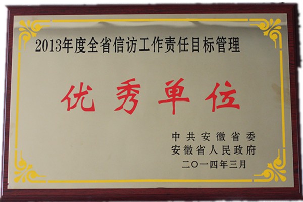 安徽建工集團榮獲《2013年度全省信訪(fǎng)工作責任目標管理優(yōu)秀單位》榮譽(yù)稱(chēng)號
