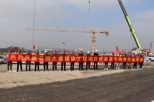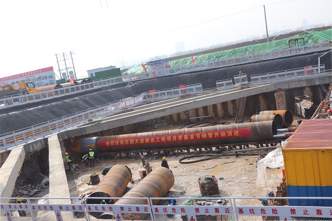 3月2日9時(shí)18分,安徽路橋集團花園大道(徽州大道-包河大道)建設工程隧道管幕首節鋼管開(kāi)始頂進(jìn)。