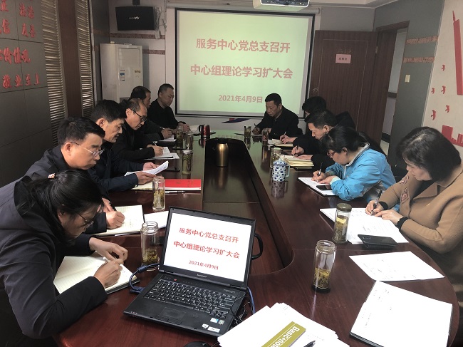 4月9日,服務(wù)中心黨總支召開(kāi)中心組理論學(xué)習(擴大)會(huì )議,中心領(lǐng)導班子成員,各黨支部書(shū)記、中層管理人員參加會(huì )議。黨總支書(shū)記、總經(jīng)理施愛(ài)民主持會(huì )議。