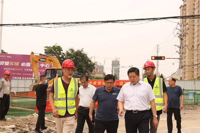 趙明一行先后前往唐河路暗涵、迎賓大道污水頂管、奇石大道等施工現場(chǎng),聽(tīng)取了項目負責人對施工當前進(jìn)度和存在問(wèn)題的匯報。趙明一行對項目的施工進(jìn)度和質(zhì)量給予了肯定,并對下一步工作提出兩點(diǎn)建議:一是要科學(xué)、規范施工,搶抓晴好天氣,倒排工期,加快推進(jìn)項目建設;二是抓實(shí)抓牢安全生產(chǎn),防微杜漸,切實(shí)做到安全質(zhì)量與進(jìn)度形象并重。