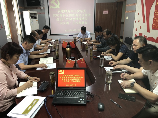 9月2日上午,服務(wù)中心黨總支召開(kāi)理論學(xué)習中心組(擴大)會(huì )議,貫徹落實(shí)全國國有企業(yè)黨的建設工作會(huì )議精神情況“回頭看”工作,并進(jìn)行了部署。會(huì )議由黨總支書(shū)記、總經(jīng)理施愛(ài)民主持,領(lǐng)導班子成員、中層管理人員參加了會(huì )議。