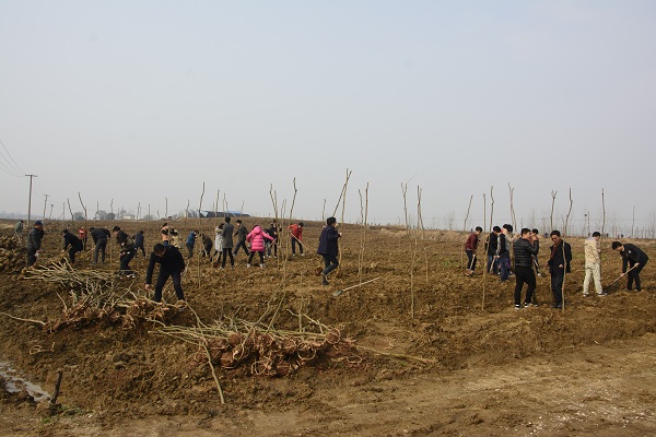 長(cháng)臨河古鎮位于合肥市東郊,肥東縣南部,西與合肥市濱湖新區僅一河之隔。經(jīng)過(guò)近一個(gè)小時(shí)車(chē)程后,大家直接奔赴劃定的植樹(shù)區域。大家互相協(xié)助,挖坑、扶樹(shù)、松土、埋樹(shù),動(dòng)作敏捷,一氣呵成,共義務(wù)種植樹(shù)苗400余棵。一棵棵樹(shù)苗在大家的辛勤培植下,挺立在溫暖的春陽(yáng),原本比較荒涼的土地頓時(shí)顯出了生機。