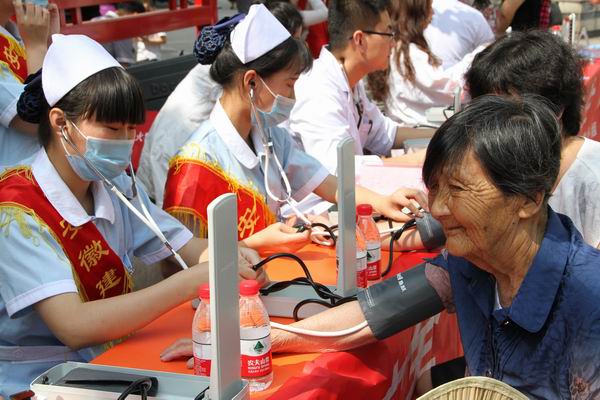早上七點(diǎn)半,小志愿者們就背著(zhù)器材、抬著(zhù)桌椅,早早趕到合肥市望湖社區,活動(dòng)于早上八點(diǎn)半正式開(kāi)始,內容包括為社區的居民義務(wù)測量血壓、健康咨詢(xún)、保健知識宣傳等,旨在將健康生活帶進(jìn)社區,改善居民的不良生活習慣?;顒?dòng)期間,小志愿者們各個(gè)面帶微笑,積極向居民宣傳健康科普知識,倡導健康科學(xué)的生活方式,在為老人測量血壓的過(guò)程中,還根據老人的血壓情況,告訴老人一些正確的調節血壓的方法?;顒?dòng)持續了二個(gè)半小時(shí),共接待社區居民上百余人次。社區居民們紛紛稱(chēng)贊此次活動(dòng)真正把服務(wù)送到了居民家門(mén)口,希望學(xué)校能將此類(lèi)活動(dòng)長(cháng)期開(kāi)展下去。