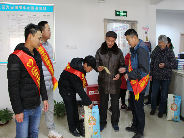 上午9時(shí),在蕪湖市弋江區興隆街道居委會(huì )的安排下,項目部青年志愿者們來(lái)到弋江區興隆街道辦事處,為孤寡老人、貧困家庭送上菜籽油、大米、慰問(wèn)金以及新年祝福。青年志愿者們悉心詢(xún)問(wèn)他們的家庭境況和身體情況,并囑咐老人們季節變化要注意保暖,行動(dòng)要注意安全,志愿者們真誠的問(wèn)候讓老人們感受到了濃濃的溫情。