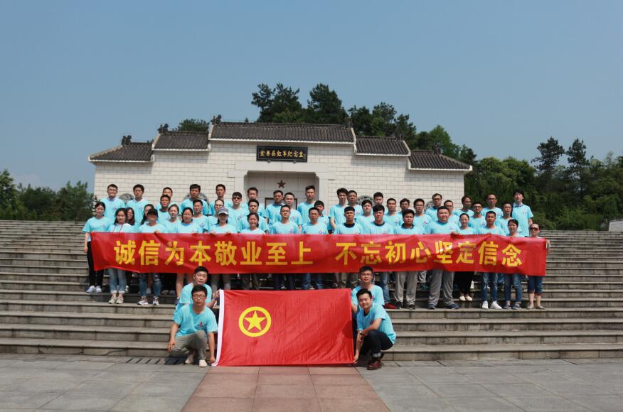 5月20日上午9時(shí)許,安徽三建2017年受表彰的優(yōu)秀團員、青年技術(shù)骨干代表、團干近60人抵達素有“紅軍故鄉,將軍搖籃”的金寨縣。大家佩戴團徽,在講解員的引導下,先后參觀(guān)了“金寨縣紅軍紀念堂”、“紅軍烈士墓園”和“金寨縣革命博物館”,始知在革命戰爭年代,金寨革命烽火經(jīng)久不息,有十多萬(wàn)英雄兒女參加革命,革命紅歌《八月桂花遍地開(kāi)》也從那時(shí)傳唱至今;紀念堂東側是洪學(xué)智將軍的墓地,洪將軍戎馬一生、功勛卓著(zhù),大家整裝肅穆,瞻仰和拜謁了將軍陵墓?!耙淮缟胶右淮缪?,一抔熱土一抔魂”,瞻仰著(zhù)一件件紅軍革命歷史文物及圖片,聽(tīng)著(zhù)講解員對紅軍革命斗爭歷史的詳細解說(shuō),大家仿佛置身于那個(gè)烽火燎原的革命年代,心潮澎湃,深受鼓舞,通過(guò)參觀(guān)大家緬懷革命烈士先烈的豐功偉績(jì),銘記革命先烈拋頭顱灑熱血的光榮歷史,堅定了理想信念。