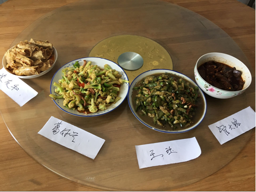活動(dòng)在一片歡呼聲中開(kāi)始。參加比賽的四位青年團員、聚精會(huì )神的專(zhuān)注于各自菜品的烹飪,或炒或煮、或翻或蒸,忙的不亦樂(lè )乎,鉚足了勁,將自己的拿手絕活展示出來(lái)。烹調時(shí)間結束,一盤(pán)盤(pán)精致誘人的菜品端上桌來(lái)供在場(chǎng)評委品嘗,最終青年團員凌友和的一道千張蒸肉卷獲得了大家一致好評。