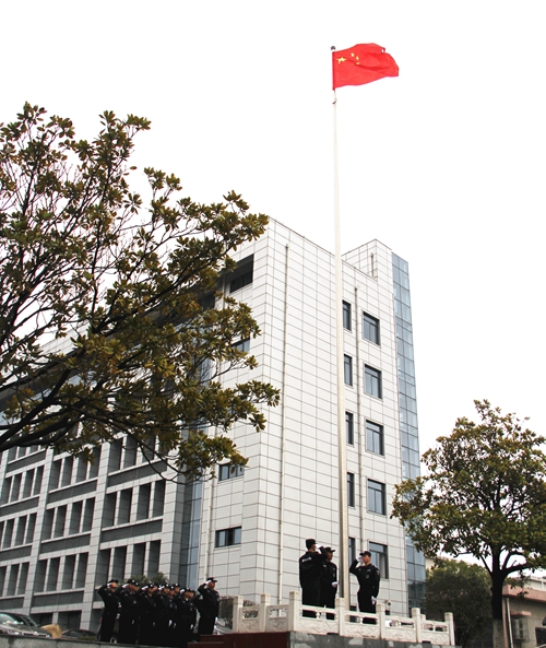 7點(diǎn)30分,在全體師生的注視下,我院國旗護衛隊邁著(zhù)整齊的步伐護送國旗來(lái)到國旗臺。在雄渾嘹亮的國歌聲中,升旗手振臂一揮,鮮艷的五星紅旗冉冉升起。全院師生面向國旗莊嚴肅立,行注目禮,心中漾起崇高的愛(ài)國之情。