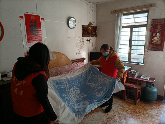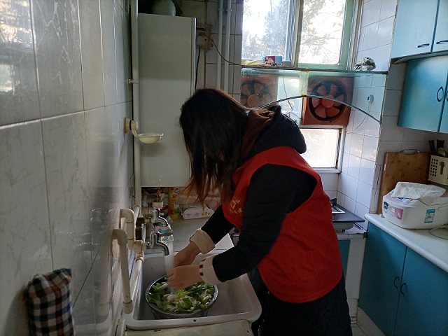 青年志愿者服務(wù)隊來(lái)到退休老職工家中,與職工們拉家常,了解他們的身體狀況和生活情況,并幫助他們打掃衛生、清洗蔬菜。