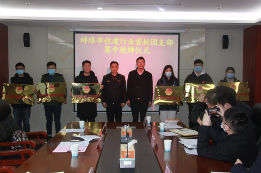安徽二建蚌埠溪湖湖山春曉、山香安置房項目參加蚌埠市住建行業(yè)首批團支部集中授牌