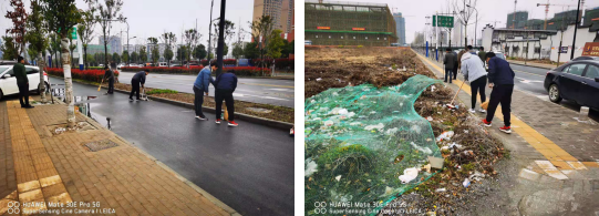 3月,靈璧翔茂中心項目部、琨宇?lèi)偤琼椖坎?、天長(cháng)吾悅廣場(chǎng)項目部利用休息時(shí)間開(kāi)展義務(wù)勞動(dòng),主動(dòng)承擔清掃城市道路衛生,有的項目部拿起鐵鍬掃把,清理在下雨后路上留下的泥巴,有的項目部清理下雨后路上留下的落葉及垃圾,項目部全體人員干勁十足,很快清理干凈了路上的泥巴、落葉及垃圾,清理的效果也得到了城管部門(mén)的認可,也為在項目上營(yíng)造了樂(lè )于奉獻的良好氛圍。