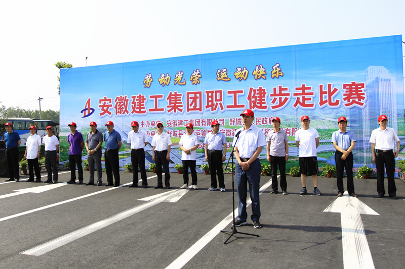 為增進(jìn)安徽建工集團與舒城縣政府的合作與友誼,提升安徽建工的品牌效應,推進(jìn)企業(yè)文化建設,6月16日,安徽建工集團與舒城縣政府在S351升級改造新建路段聯(lián)合舉行職工健步走活動(dòng)。來(lái)自安徽建工集團機關(guān)和所屬各單位,舒城縣交通局等4個(gè)相關(guān)單位共120名選手參加比賽。集團公司黨委書(shū)記、董事長(cháng)趙時(shí)運、在家的集團領(lǐng)導班子成員,舒城縣委副書(shū)記、常務(wù)副縣長(cháng)趙珞及縣政府、縣人大和縣政協(xié)領(lǐng)導與各單位選手一起參加了健步走活動(dòng)。