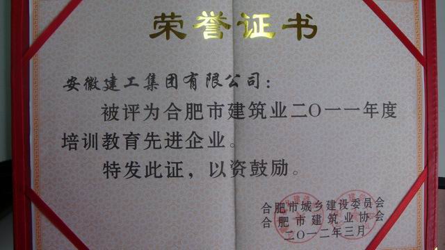 近日,在合肥市建委召開(kāi)的2012年建筑業(yè)工作會(huì )議上,安徽建工集團榮獲“合肥市建筑業(yè)二0一一年度培訓教育先進(jìn)企業(yè)”榮譽(yù)稱(chēng)號。