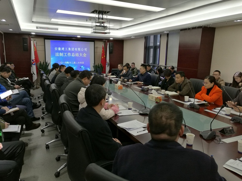 20161226日,安徽建工集團有限公司四季度暨年終法制工作總結大會(huì )在安建大廈28會(huì )議室舉行。集團公司總法律顧問(wèn)申玉恩以及所屬各單位法務(wù)工作負責人、法務(wù)部工作人員參加會(huì )議。