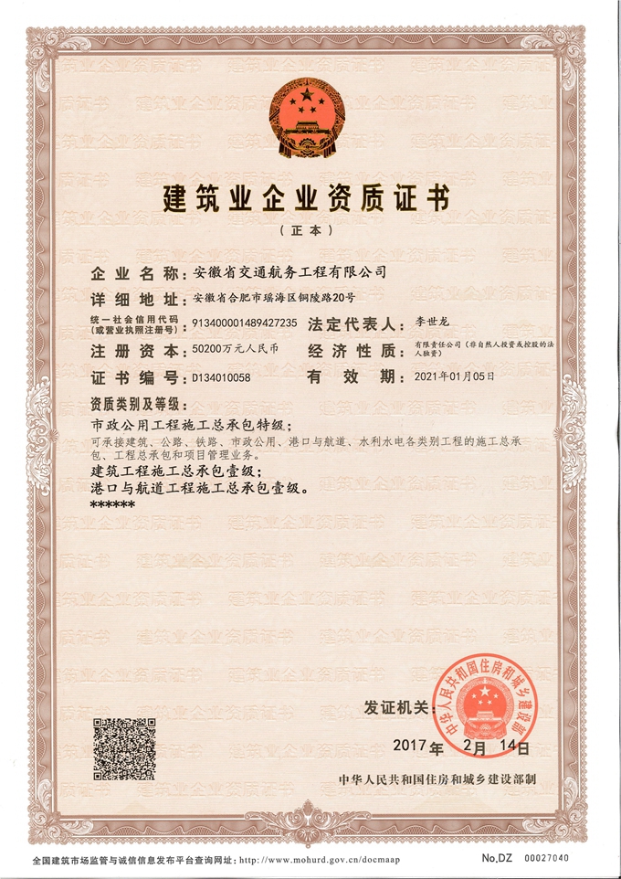 特級資質(zhì)的成功晉升,標志著(zhù)安徽交航發(fā)展邁入了又一座新的里程碑。特級資質(zhì)是我國建筑業(yè)資質(zhì)標準的最高級別,是衡量建筑企業(yè)整體實(shí)力的重要標志,更是一個(gè)地區建筑業(yè)發(fā)展水平的重要標志。