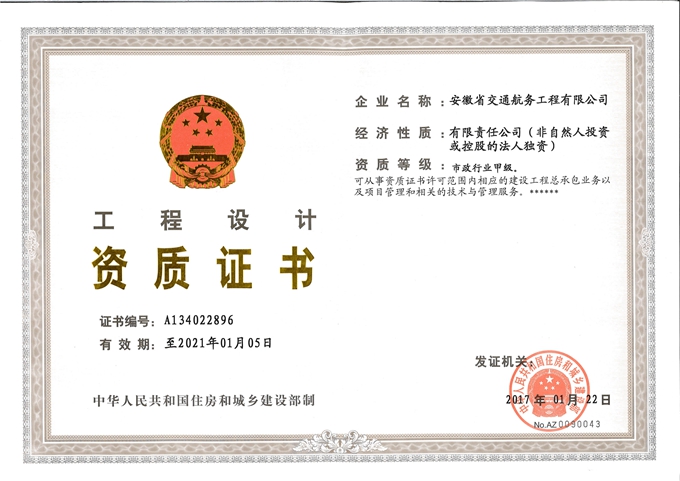 近日,住房和城鄉建設部發(fā)布公告,安徽交航成功獲得市政公用工程施工總承包特級資質(zhì)及市政行業(yè)甲級設計資質(zhì),成為我省首家省屬市政特級資質(zhì)企業(yè)。