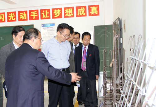 開(kāi)幕式后,劉家靜一行在學(xué)院張衛東院長(cháng)等班子成員的陪同下,參觀(guān)了學(xué)院鋼筋工、砌筑工、木工、建筑裝飾、汽車(chē)維修、數控、給排水、樓宇智能仿真、計算機硬件檢測與維修、BIM機房等10余個(gè)實(shí)訓教室和數字一體化教室。參觀(guān)過(guò)程中,大家聽(tīng)取張衛東介紹了學(xué)院“高端引領(lǐng)、特色立?!钡霓k學(xué)理念、新校區建設進(jìn)展情況、實(shí)訓工作開(kāi)展情況以及學(xué)生在國家級和省級技能大賽上取得的成績(jì)等方面工作。