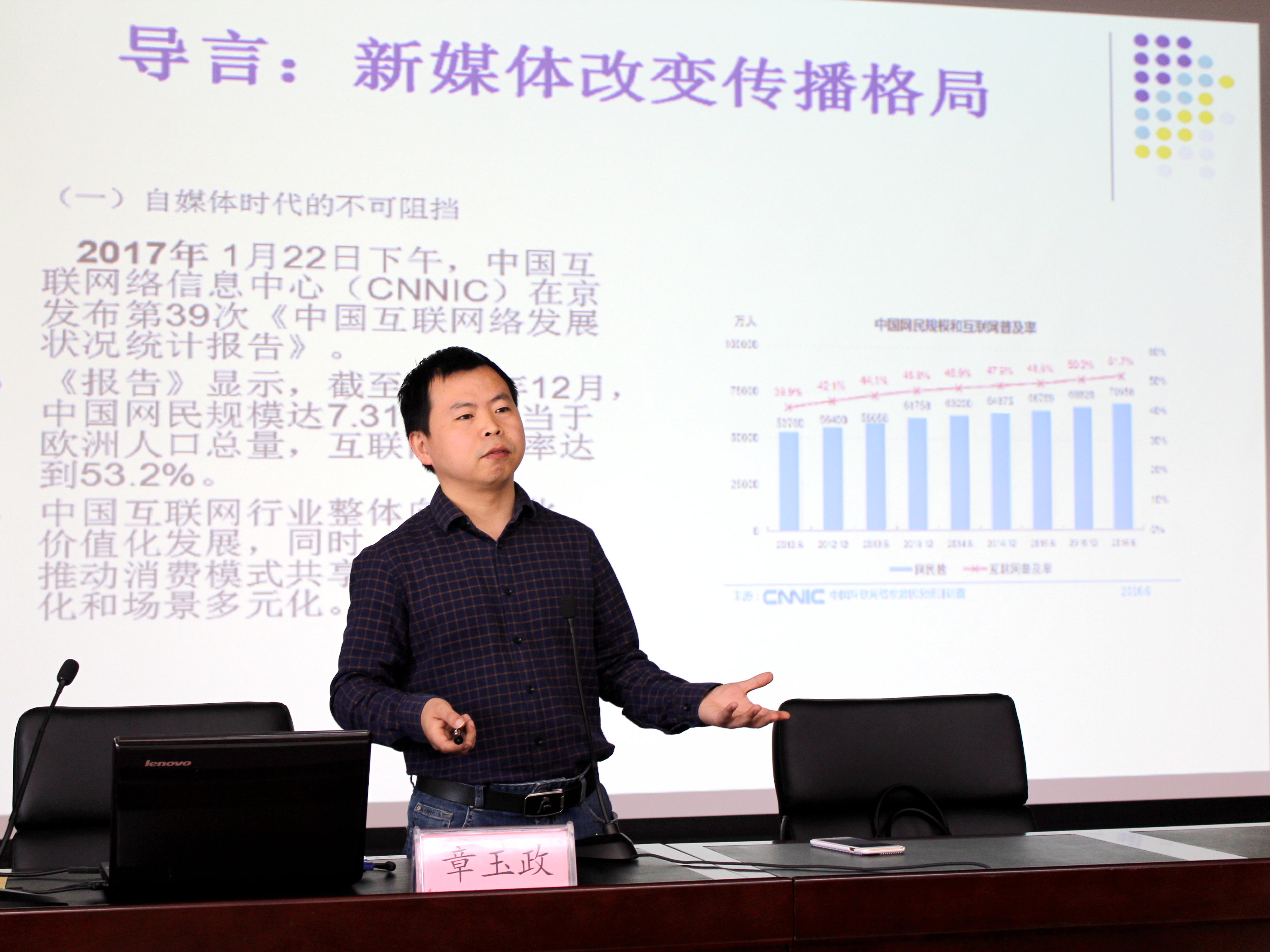 章玉政老師結合長(cháng)期以來(lái)的一線(xiàn)新聞采編經(jīng)歷,作了題為《新媒體語(yǔ)境下的消息寫(xiě)作》的專(zhuān)題授課。授課圍繞新聞的概念、新聞寫(xiě)作步驟、如何寫(xiě)好消息等內容,談感悟、論技巧,既旁征博引,又鞭辟入里,用鮮活的新聞熱點(diǎn)以案說(shuō)法,真實(shí)、親切、生動(dòng),引起學(xué)員們的濃厚興趣,贏(yíng)得現場(chǎng)陣陣掌聲。