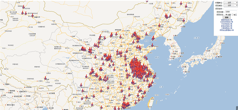 近日,為加強對集團所屬施工類(lèi)企業(yè)項目(在建、竣工)的監控管理力度,保障項目建設的健康、穩定、高效運行,防范因項目管理混亂產(chǎn)生的經(jīng)營(yíng)風(fēng)險和由此帶來(lái)的不良社會(huì )影響,結合集團工程管理部門(mén)、市場(chǎng)經(jīng)營(yíng)部門(mén)、安監局等業(yè)務(wù)需求。根據項目管控的進(jìn)度、安全和質(zhì)量等目標,集團信息管理部自主開(kāi)發(fā)上線(xiàn)啟用了集團實(shí)時(shí)項目地圖管理系統,最終實(shí)現了一張地圖解決項目的管控問(wèn)題。
