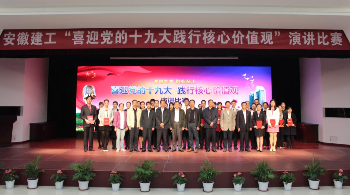 在主持人精彩的開(kāi)場(chǎng)白之后演講比賽正式拉開(kāi)序幕,參賽選手圍繞“喜迎黨的十九大,踐行核心價(jià)值觀(guān)”這一主題,結合各自工作和生活經(jīng)歷,借助自己設計制作的背景短片或PPT,用真摯的情感、生動(dòng)的事例,聲情并茂、滿(mǎn)懷激情地講述了安徽建工人立足崗位,弘揚踐行集團核心價(jià)值觀(guān)的深切體會(huì )和感人故事,展現了身邊員工于平凡中奉獻青春、于艱苦中助力改革、于崗位中磨練尖兵的樸實(shí)情懷。比賽中,評委們圍繞參賽選手的演講內容、演講技巧、演講效果、時(shí)間控制、脫稿情況等方面進(jìn)行了現場(chǎng)綜合考評和打分,并現場(chǎng)宣布比賽結果;比賽結束后,領(lǐng)導評委嘉賓為獲獎選手進(jìn)行了頒獎。