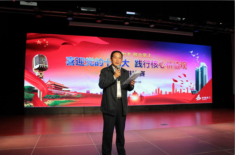 金秋時(shí)節,碩果盈枝。10月12日下午,集團公司“喜迎黨的十九大  踐行核心價(jià)值觀(guān)”主題演講比賽決賽在安建大廈三樓會(huì )議室隆重舉行。來(lái)自集團所屬各單位,從預賽闖關(guān)而來(lái)的16名參賽選手展開(kāi)了一場(chǎng)精彩激烈的角逐,送上了一場(chǎng)精彩紛呈的視聽(tīng)盛宴。