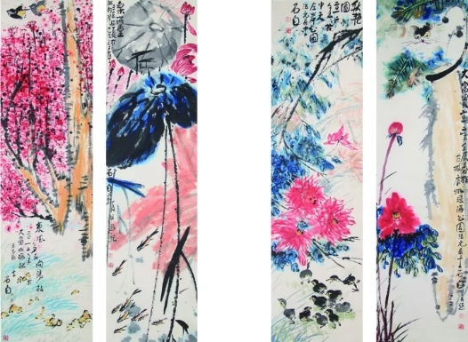 安徽二建  石德元 國畫(huà)作品《春夏秋冬》四條屏