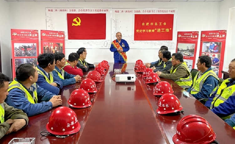 近日,由合肥市總工會(huì )組織開(kāi)展的黨史學(xué)習教育“進(jìn)工地”宣講活動(dòng)來(lái)到暢通二環(huán)(西南環(huán))項目,全國勞動(dòng)模范徐輝為一線(xiàn)建設者作主題宣講報告。