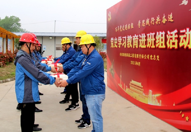 為創(chuàng )新黨史學(xué)習教育形式,推動(dòng)黨史學(xué)習教育向基層延伸,4月23日上午,安徽路橋路面公司黨總支圍繞“百年黨史進(jìn)班組 學(xué)思踐悟共奮進(jìn)”主題,開(kāi)展黨史學(xué)習教育進(jìn)班組活動(dòng),重溫黨的光輝歷史,接受紅色文化洗禮。所屬項目支部書(shū)記、班組黨員代表參加。