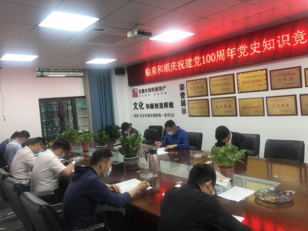 上好“創(chuàng )新黨建課”,和順地產(chǎn)所屬各單位一方面利用網(wǎng)絡(luò )平臺與互聯(lián)網(wǎng)資源,積極開(kāi)展視頻黨課,組織全體黨員集中觀(guān)看黨史紀錄片、紅色主題影片;另一方面,積極組織戶(hù)外紅色教育實(shí)踐,赴臺兒莊、藕塘革命紀念館、渡江戰役總指揮前委舊址等地聆聽(tīng)革命故事,感受革命情懷;除此之外,多家黨支部“以考促學(xué)”,開(kāi)展黨史知識測試、知識競賽等活動(dòng),不斷鞏固學(xué)習效果。