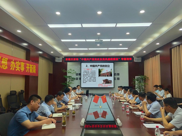 為進(jìn)一步推深做實(shí)黨史學(xué)習教育活動(dòng),提升黨員干部理論水平和政治素養,5月28日,安徽水利貝斯特公司邀請中共安徽省委黨校政法部副主任、教授戴傳利作中國共產(chǎn)黨奮斗史暨黨風(fēng)廉政建設培訓,引導廣大黨員干部學(xué)史明理、學(xué)史增信、學(xué)史崇德、學(xué)史力行,做到學(xué)黨史、悟思想、辦實(shí)事、開(kāi)新局。公司領(lǐng)導班子,項目書(shū)記、項目經(jīng)理及機關(guān)全體黨員近50人參加了培訓。