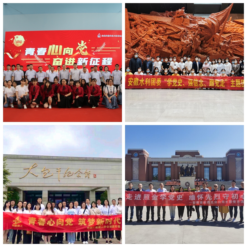安徽三建團委組織團員青年參觀(guān)赴徽杭古道,重走紅軍路,實(shí)地接受黨史學(xué)習教育和紅色革命傳統教育。安徽二建組織團員青年前往鳳陽(yáng)小崗村,參觀(guān)安徽紅色文化博物館,了解紅色文化,追尋紅色足跡。安徽水利、安徽路港組織團員青年赴渡江戰役紀念館參觀(guān)學(xué)習,面對鮮紅黨旗、團旗,重溫入黨、入團誓詞。路橋集團組織團干、優(yōu)秀團員代表赴革命老區金寨開(kāi)展“紅色基地溫黨史 高舉團旗跟黨走”紅色教育主題活動(dòng),引導團員青年感悟黨的初心使命,傳承黨的紅色基因。安徽路橋組織團員青年來(lái)到?jīng)芸h皖南事變烈士陵園,參觀(guān)無(wú)名英雄烈士墓、主題廣場(chǎng)、主碑紀念廣場(chǎng),并向革命英烈敬獻花籃,重溫入團誓詞,追憶崢嶸歲月,緬懷革命先烈,感悟偉大新四軍精神。安建建材組織前往八路軍西安辦事處紀念館,學(xué)習抗日戰爭時(shí)期革命史。海外事業(yè)部青年團員在黨組織帶領(lǐng)下,參觀(guān)了大別山水吼革命事跡陳列館、石河區農會(huì )舊址和梅寨紅色革命教育基地。安徽安裝組織赴照金陜甘邊革命根據地紀念館參觀(guān)學(xué)習,從革命先輩崇高精神中感悟初心使命。安建財務(wù)、安建投資聯(lián)合組織團員青年赴壽縣小甸鎮“安徽省第一面黨旗紀念園”探尋紅色足跡,接受紅色洗禮,傳承紅色基因。安徽建機組織黨員、團員、職工群眾代表到池州市烈士陵園開(kāi)展“學(xué)黨史 憶初心 踐使命”主題學(xué)習教育活動(dòng)。安建地產(chǎn)組織前往渡江戰役總前委參謀處舊址舊址開(kāi)展紅色文化學(xué)習,感受革命文化熏陶。