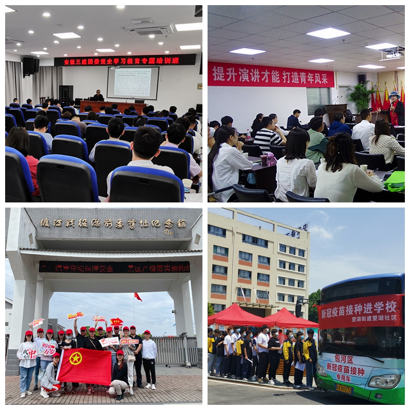 聚焦黨政所需和青年所盼,“五四”期間,集團各級團組織精準發(fā)力,推動(dòng)黨史學(xué)習教育成果轉化為為青年辦實(shí)事的具體成效。安徽一建邀請市疾控中心心理健康咨詢(xún)師為項目青年作心理健康知識講座,助力緩解工作生活壓力,保持良好心態(tài)。安徽三建舉辦“學(xué)黨史、強信念、跟黨走”黨史教育學(xué)習專(zhuān)題培訓班暨青年職工交流座談會(huì ),青年團員圍繞職工培訓、項目管理、薪酬福利、休息休假、職業(yè)生涯等17個(gè)方面談想法、提建議,與會(huì )領(lǐng)導認真聽(tīng)取并現場(chǎng)逐一解答,切實(shí)幫助解決實(shí)際問(wèn)題。安徽路橋項目組建“我為群眾辦實(shí)事”青年突擊隊,為攻堅克難、服務(wù)項目建設貢獻青春力量。路橋集團將培訓課堂搬到項目施工現場(chǎng),組織開(kāi)展下穿隧道防水工程施工技術(shù)培訓,提升團員青年技能管理水平。安建總承包進(jìn)一步建設完善“青年之家”綜合服務(wù)平臺,撥付團費為團員青年采購了一批黨史學(xué)習教材和專(zhuān)業(yè)書(shū)籍資料。安徽路港舉辦“提升演講技能 彰顯青年風(fēng)采”主題演講培訓,為青年員工提供學(xué)習交流平臺。安徽建科通過(guò)走訪(fǎng)調研和電子問(wèn)卷等形式征集170余名職工關(guān)于青年職工文化生活等16個(gè)方面涉意見(jiàn)、建議,想青年之所想、急青年之所急、解青年之所憂(yōu)。技師學(xué)院協(xié)調移動(dòng)接種大巴進(jìn)校園,上門(mén)為師生接種疫苗,筑牢校園防疫屏障。安徽交航組織青年志愿者利用業(yè)余時(shí)間到合肥航道局大院、渦陽(yáng)義門(mén)鎮四橋社區法治文化廣場(chǎng)開(kāi)展義務(wù)勞動(dòng)志愿服務(wù),切實(shí)為周邊群眾辦實(shí)事,用實(shí)際行動(dòng)為建設和諧美麗社區家園貢獻力量。