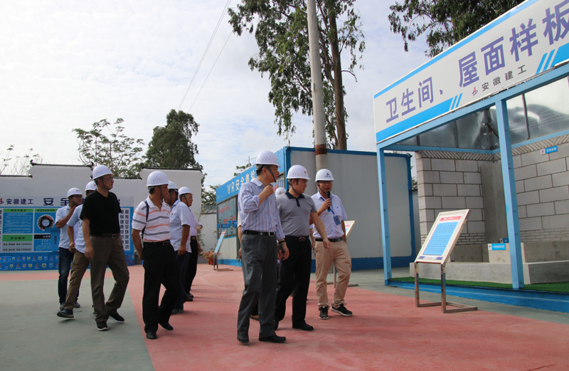 在安徽三建三亞紅塘灣項目,調研組深入標準化施工現場(chǎng),詳細察看了樣板施工區、VR安全警示體驗館及工程實(shí)體,對于該項目在業(yè)主實(shí)測評比中的優(yōu)異表現表示了充分肯定。
