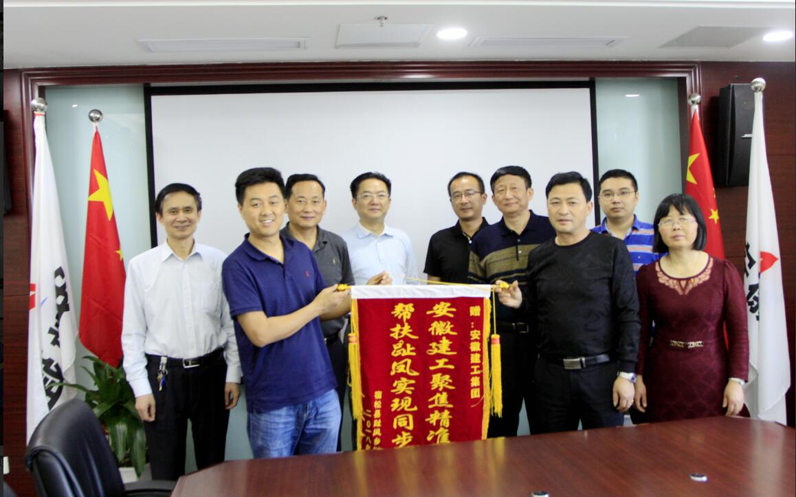 5月3日,恰逢安徽建工集團派駐趾鳳村扶貧工作隊一周年之際,安建國際大廈迎來(lái)了一批特殊的客人——宿松縣趾鳳鄉、村兩級政府代表赴合肥,專(zhuān)程向集團贈送錦旗,以表達受助幫扶的感激之情。集團總經(jīng)理劉家靜、黨委副書(shū)記牛曙東、副總經(jīng)理霍向東親切接見(jiàn)了來(lái)訪(fǎng)一行,并就駐村扶貧工作開(kāi)展進(jìn)行了深入交流。