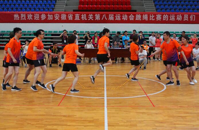 在跳繩比賽中,安徽建工代表隊發(fā)揮團隊優(yōu)勢,奮勇拼搏、緊密配合,勇奪10人8字型跳大繩團體、1分鐘一帶一雙人跳(安徽建機公司劉國枝、王帶娣)、30秒單搖女子甲組個(gè)人(安徽建機公司王帶娣)、30秒單搖男子乙組個(gè)人(安徽建機公司徐杰)4項冠軍;同時(shí),跳繩隊還獲得2項個(gè)人賽第三名,2項個(gè)人賽第五名,實(shí)現了跳繩項目的大豐收,其中團體賽成績(jì)創(chuàng )造了賽會(huì )記錄,贏(yíng)得了觀(guān)眾和各隊的一致稱(chēng)贊。