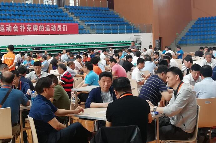 撲克牌比賽是省直機關(guān)八運會(huì )單項賽事參賽人數最多的項目之一,男子組共有700多名、300多對各路高手參加。比賽地點(diǎn)設在安徽城市管理職業(yè)學(xué)院(磨店校區),由于參賽人員多,為保證比賽和工作“兩不誤”,比賽安排在周六、周日兩天進(jìn)行,每天安排5-6輪比賽,中午不休息。安徽建工隊選手克服困難,團結協(xié)作,一局一個(gè)腳印,經(jīng)過(guò)11輪的比拼,童宗勝、吳紅星組合脫穎而出,以11戰10勝的成績(jì),奪得男子組亞軍。