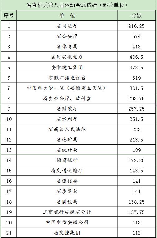 省直機關(guān)運動(dòng)會(huì )每四年舉辦一次,這屆運動(dòng)會(huì )是省直機關(guān)歷史上規模最大、參賽人數最多的一次體育盛會(huì ),共有168個(gè)廳局級單位、13000多名選手參加。為了迎接這屆運動(dòng)會(huì ),安徽建工集團廣泛選拔各個(gè)運動(dòng)項目選手,組成了以黨委書(shū)記、董事長(cháng)趙時(shí)運為團長(cháng)的165人的體育代表團,報名參加了籃球、足球、拔河、羽毛球、田徑、游泳、乒乓球、象棋、撲克、釣魚(yú)、健身走、跳繩、毽球、保齡球等14個(gè)大項、66個(gè)小項的比賽。賽前制定各個(gè)項目的目標,精心組織、周密安排。全體隊員刻苦訓練,在各基層單位的大力支持下,全體運動(dòng)員發(fā)揚安徽建工人特別能吃苦,特別能戰斗的作風(fēng),團結協(xié)作,頑強拼搏,共奪得籃球、象棋、拔河、游泳、毽球、跳繩等16個(gè)項目的冠軍、10項亞軍和22個(gè)前八名,其中,籃球、足球、游泳、拔河、跳繩等項目均突破賽前目標,取得了歷史最好成績(jì)。