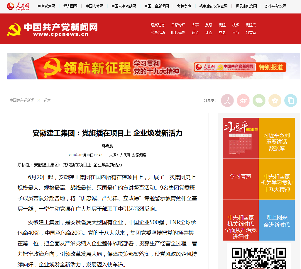 中央媒體點(diǎn)贊安徽建工集團黨建