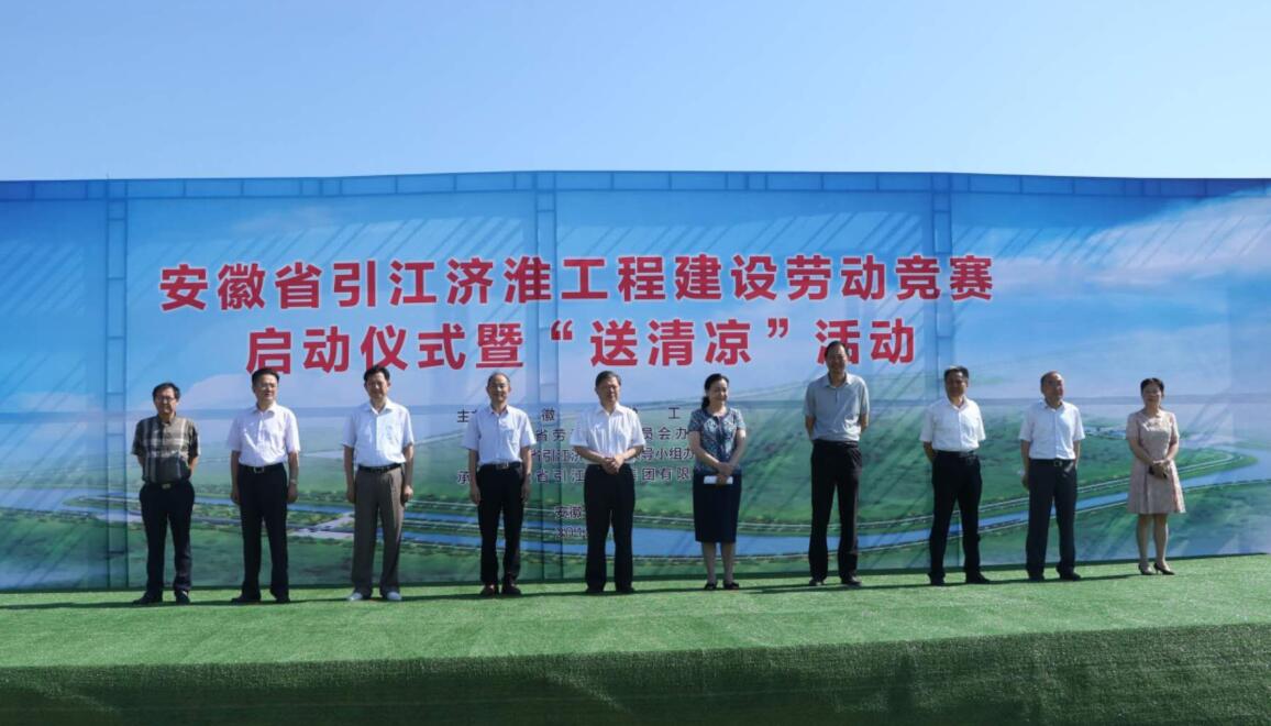 7月18日,由安徽省總工會(huì )、安徽省勞動(dòng)競賽委員會(huì )辦公室、安徽省引江濟淮工程領(lǐng)導小組辦公室合作主辦的安徽省引江濟淮工程建設勞動(dòng)競賽啟動(dòng)儀式暨“送清涼”活動(dòng)在安徽水利派河口泵站項目及小合分線(xiàn)項目成功舉辦。安徽省人大常委會(huì )副主任、省總工會(huì )主席李明參加活動(dòng),并就有關(guān)工作進(jìn)行指示。省總工會(huì )副主席李素萍、省總工會(huì )經(jīng)審會(huì )主任胡東輝、省國資委監事會(huì )主席鄭成雨、合肥市總工會(huì )主席張業(yè)鎖及地方有關(guān)領(lǐng)導、省引江濟淮集團領(lǐng)導出席活動(dòng),集團總經(jīng)理劉家靜、副總經(jīng)理許克順受邀出席了此次活動(dòng),安徽水利工會(huì )主席朱樂(lè )華陪同參加了活動(dòng)。