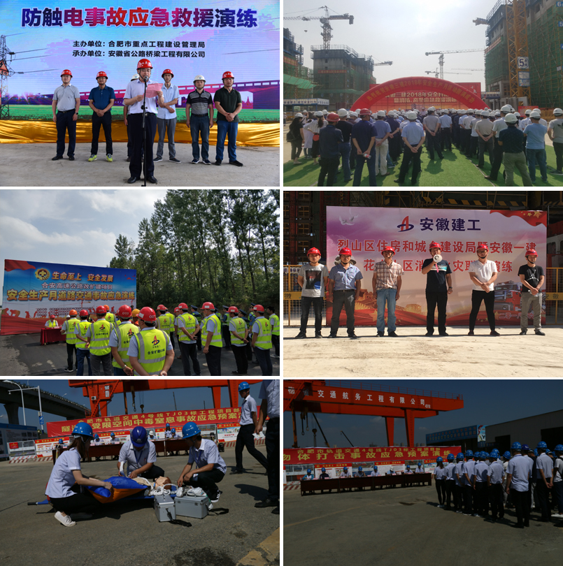 安徽水利、安徽路橋、安徽交航、安徽三建、安徽二建、安徽一建、路橋集團、安徽路港、安建建設、安建建材、安建投資等單位開(kāi)展了應急預案、應急知識、自救互救、避險逃生方面的培訓和消防、觸電、高處墜落、防汛、水上救援、高溫中暑、坍塌、地下密閉空間窒息等生產(chǎn)安全事故應急演練活動(dòng),應急預案演練踐行了“不發(fā)生、控得住、治得了”的積極防控理念,“以練為戰”提升了應急處置能力,提高了應對事故、防災避險、快速反應和協(xié)調作戰能力。