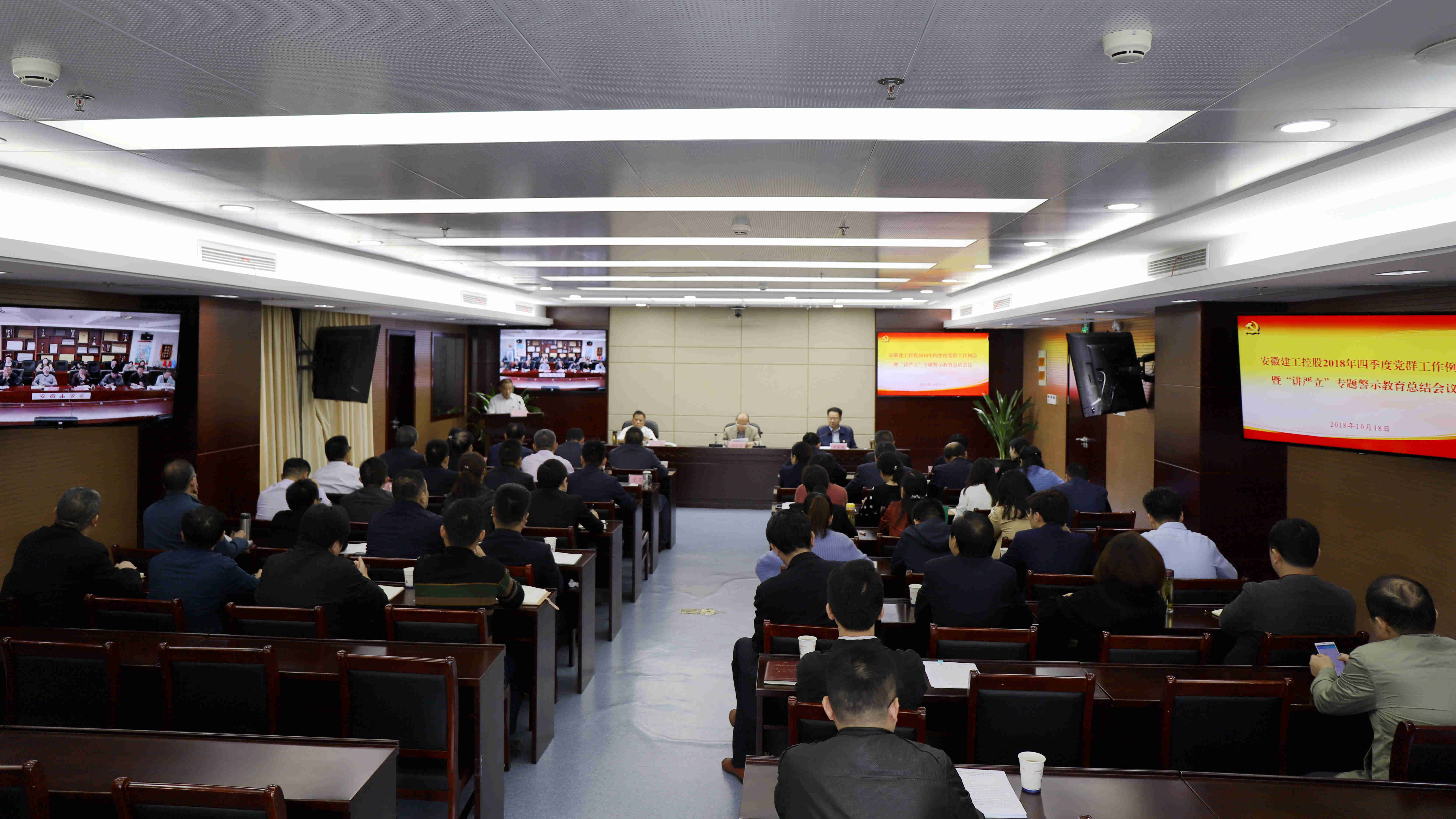 10月18日上午,集團四季度黨群工作例會(huì )暨“講嚴立”專(zhuān)題警示教育總結會(huì )在安建大廈28樓會(huì )議室召開(kāi),會(huì )議以視頻會(huì )議方式進(jìn)行。建工控股黨委書(shū)記、董事長(cháng)趙時(shí)運出席會(huì )議并講話(huà),黨委委員、紀委書(shū)記宋志華傳達全省“講嚴立”總結大會(huì )精神并作集團“講嚴立”專(zhuān)題警示教育工作總結。建工控股總經(jīng)理、黨委副書(shū)記劉家靜主持會(huì )議。