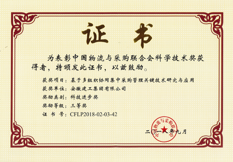 近日,由中國物流與采購聯(lián)合會(huì )主辦的第十一屆現代物流科技創(chuàng )新大會(huì )暨2018年度中國物流與采購聯(lián)合會(huì )科學(xué)技術(shù)獎頒獎大會(huì )于重慶成功召開(kāi),集團申報的《基于多組織協(xié)同集中采購管理關(guān)鍵技術(shù)研究與應用》榮獲科技進(jìn)步三等獎。
