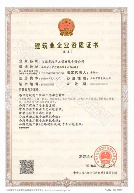 目前,除擁有港口與航道工程施工總承包特級資質(zhì)外,安徽路港還同時(shí)擁有公路工程、市政公用工程施工總承包一級資質(zhì)及橋梁、路基、路面、公路交通工程(交通安全設施)四項專(zhuān)業(yè)承包一級、隧道工程專(zhuān)業(yè)二級等多項資質(zhì)。